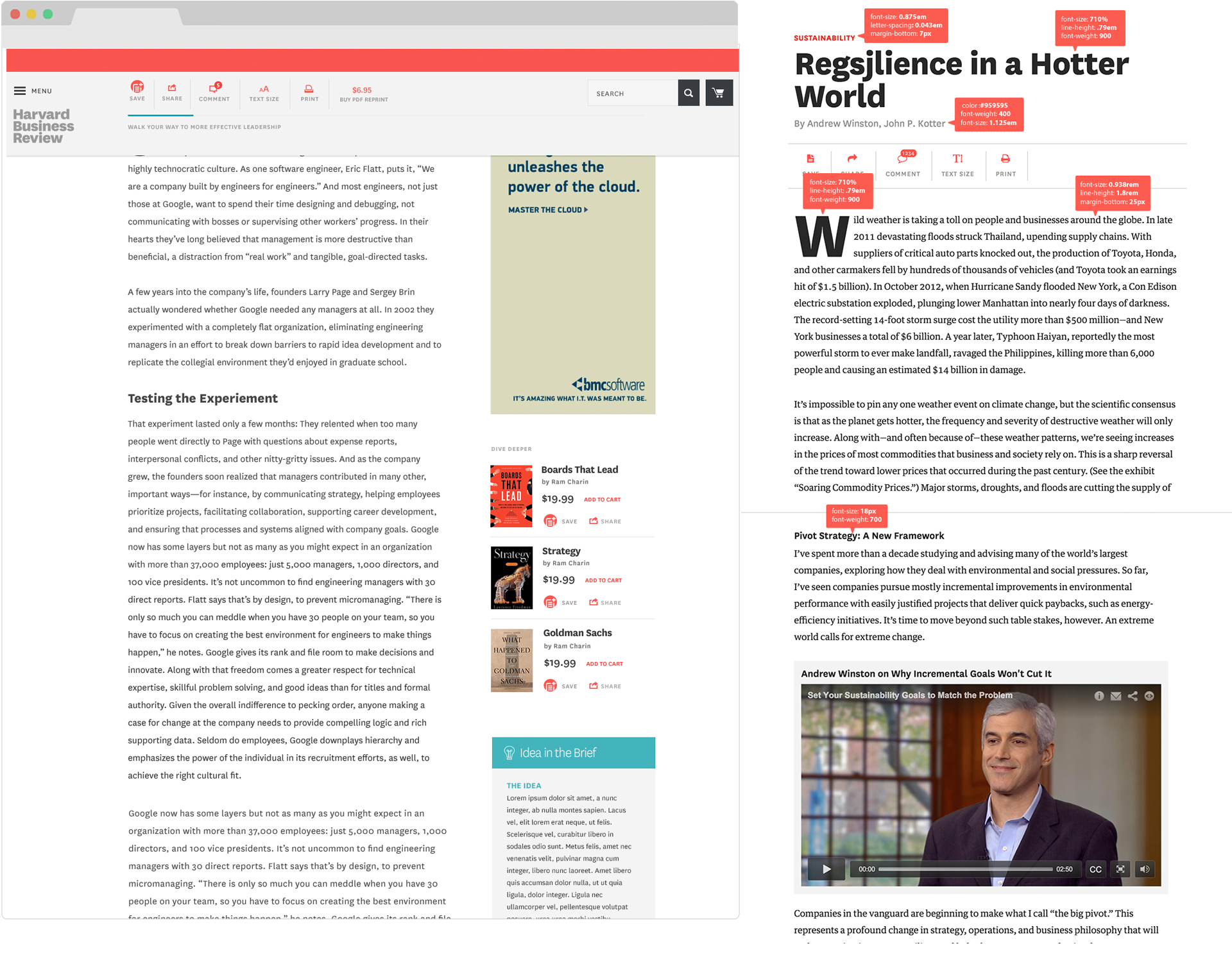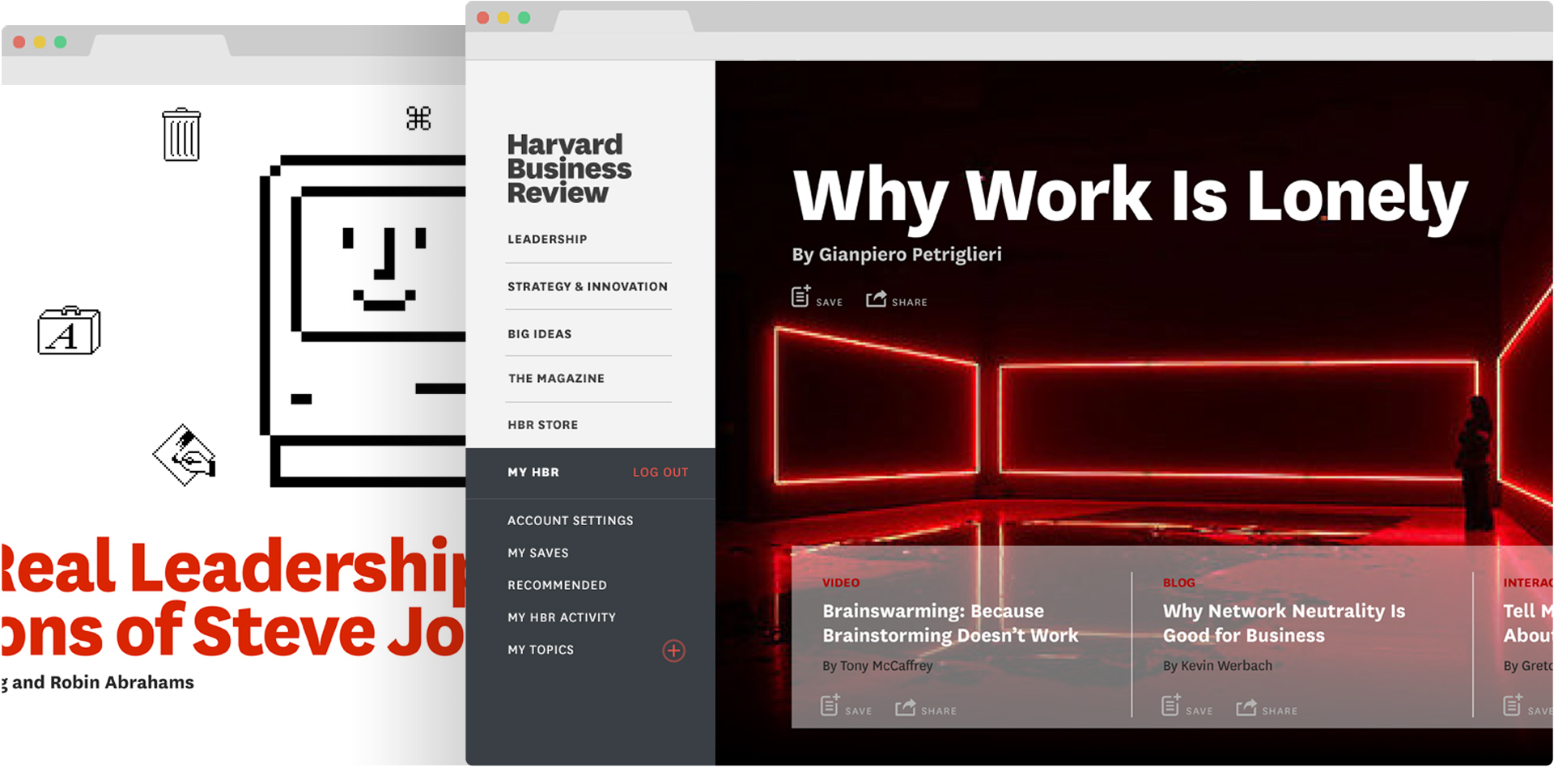 I helped the team along with the Harvard Business Review Design Department as a Senior Interaction Designer on the redesign of HBR.org new experience.